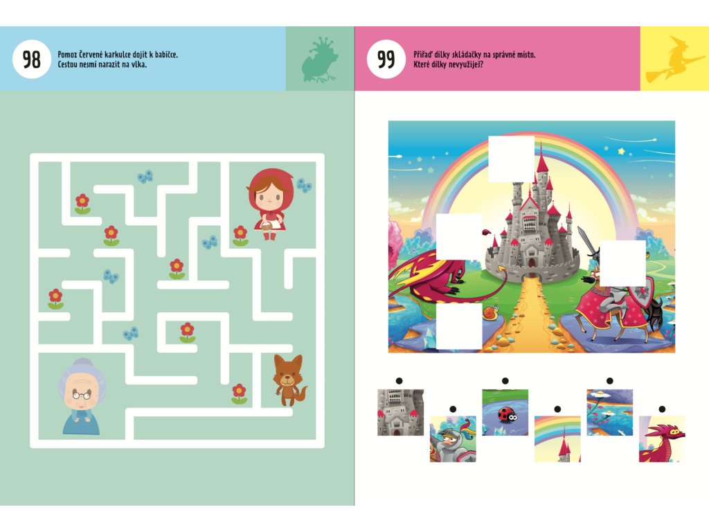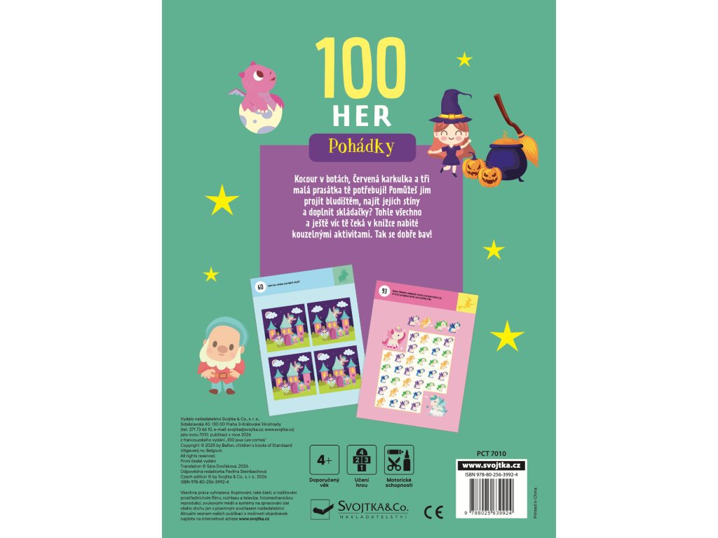 Kniha je plná her s tématem pohádek, kouzelných tvorů a pohádkových postav, při jejichž řešení se děti zabaví opravdu na dlouho. Kniha obsahuje rovných 100 her a je určená především pro čtyřleté děti. Podněcuje k logickému myšlení, řešení problémů, ale také představivosti a tvořivosti. Při plnění úkolů si děti procvičují psaní, postřeh, koordinaci oka a ruky a motorické schopnosti. Během aktivit si mohou připomenout známé pohádky nebo si podle obrázků a úkolů vymyslet vlastní kouzelné příběhy.Doplňkové parametry