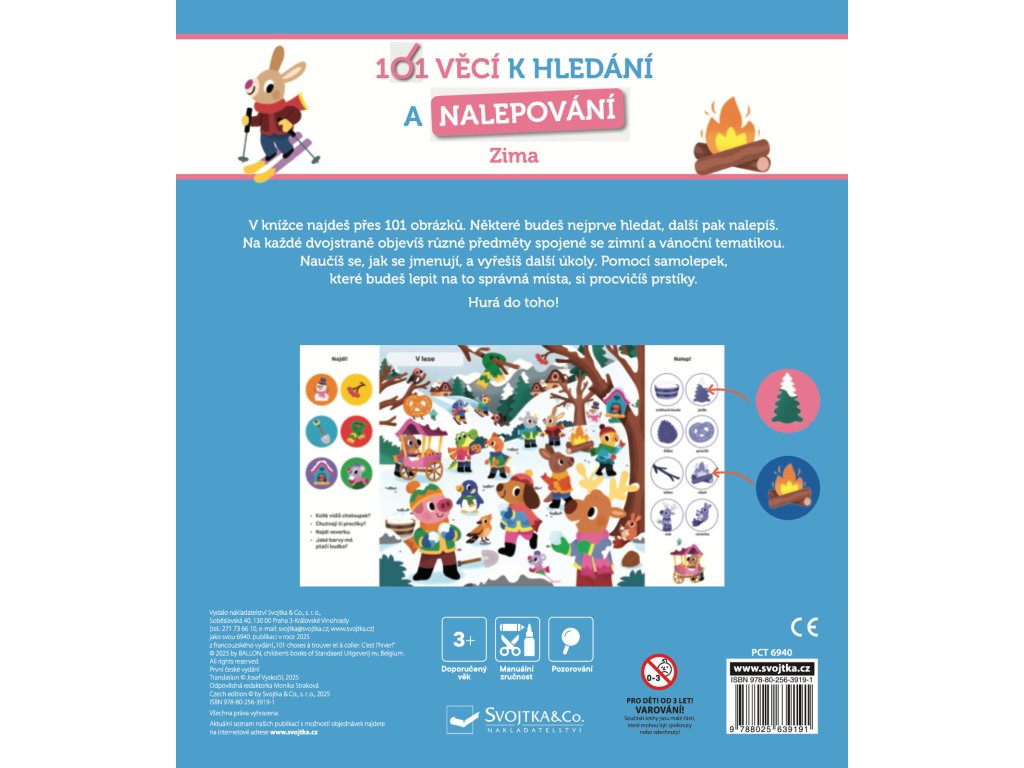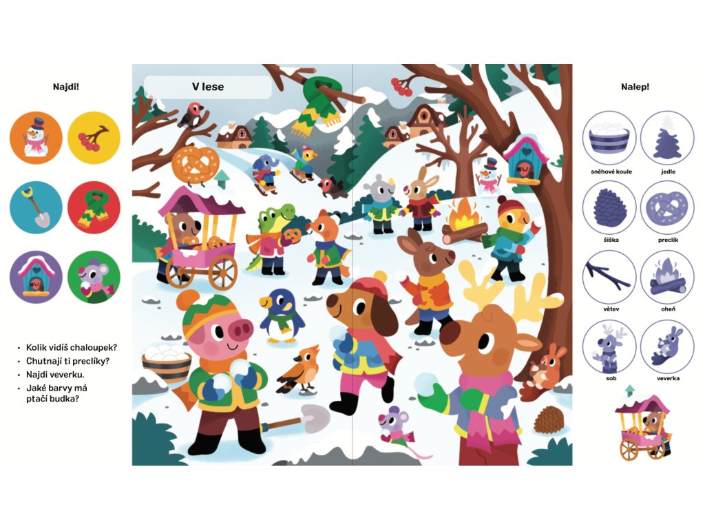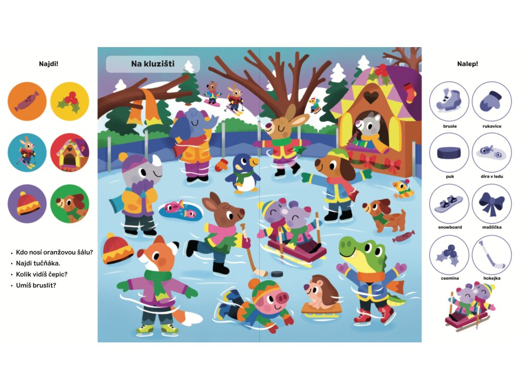 Nic nebaví děti tolik jako hledání obrázků a dolepování samolepek na stránky pracovního sešitu. V tomto sešitě si takové aktivity užije do sytosti - čeká jej totiž přes 101 obrázků. Některé bude nejprve hledat, další pak nalepí. Na každé dvojstraně objeví předměty spojené se zimní a vánoční tematikou. Při plnění úkolů a zodpovídání otázek se děti naučí, jak se co nazývá. Pomocí dolepování samolepek na správné místo si také procvičí jemnou motoriku.Doplňkové parametry