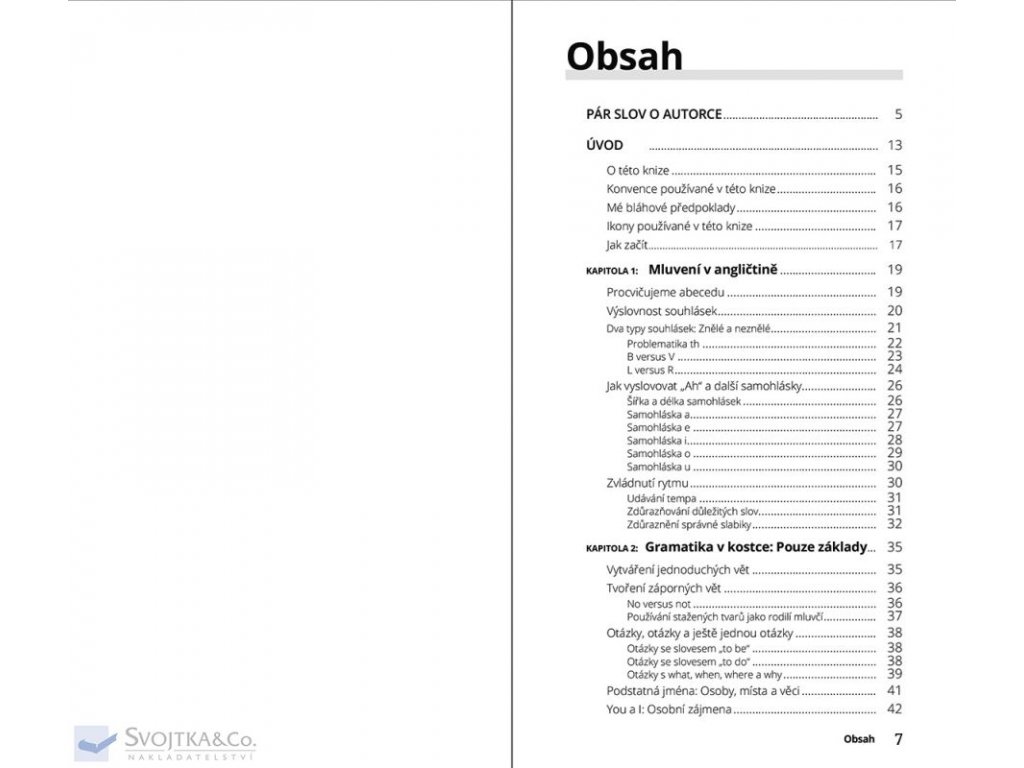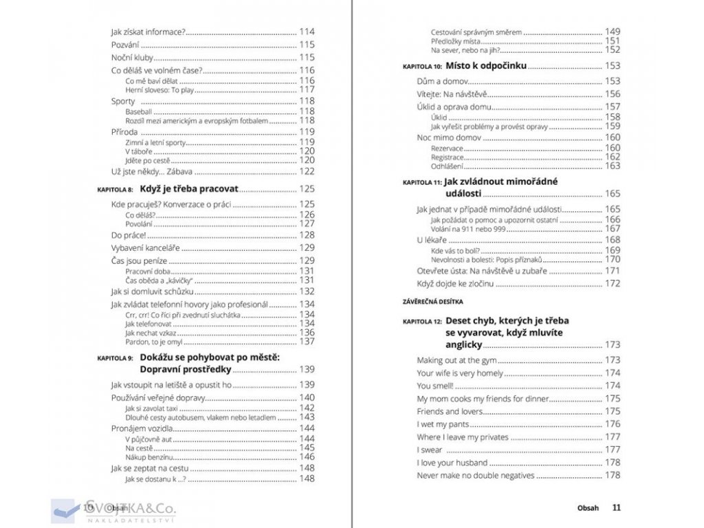 Chcete zvládnout rychle základy angličtiny tak, abyste se především domluvili? Radši než do biflování pravidel, výjimek a výjimek z výjimek byste věnovali svůj čas osvojení frází, které ve skutečném životě a běžných situacích opravdu použijete? Pak je tato učebnice angličtiny přesně to, co hledáte! V rámci gramatiky prosvištíte jen opravdu nejnutnějšími základy a rovnou se vrhnete do "živé angličtiny": jak se seznámit, jak se neztratit při cestování, jak si přečíst jídelní lístek, jak používat veřejnou dopravu a jak nakupovat. Naučíte konverzovat o volném čase, své rodině a domovu. Nouzové situace jako požár, přepadení či úraz už vás rovněž v angličtině nezaskočí. Závěrečná desítka vás upozorní na nejčastější chyby a přeřeky, které by na straně rodilých mluvčích vyvolaly rozpaky. Tato knížka angličtiny pro vás bude na cestách neocenitelným pomocníkem.