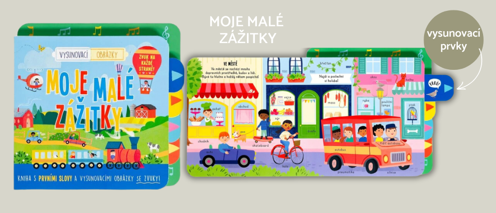 Náš novinkový přehled uzavřeme originální knihou Moje malé zážitky, která chytře kombinuje leporelo s vysunovacími obrázky (pohyblivými prvky pro rozvoj jemné motoriky) a zvukové efekty. 🎶 Vydejte se s knihou do nejrůznějších prostředí, kde se budete moct s dětmi ve věku dvou až tří let učit nová slova. Objevujte město, venkov nebo třeba pláž! 🏙️ 🌲 🏖️ Nechte dítě povytáhnout obrázky, naslouchejte následným zvukům a představte svým nejmenším okolní svět hravou interaktivní formou.