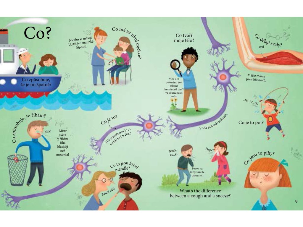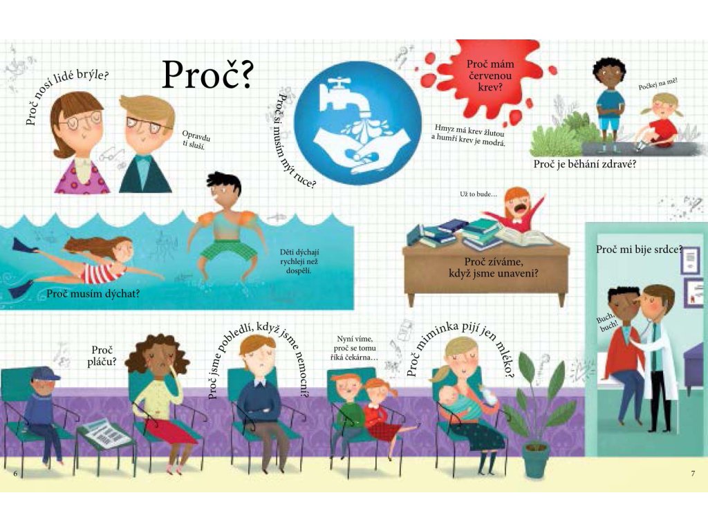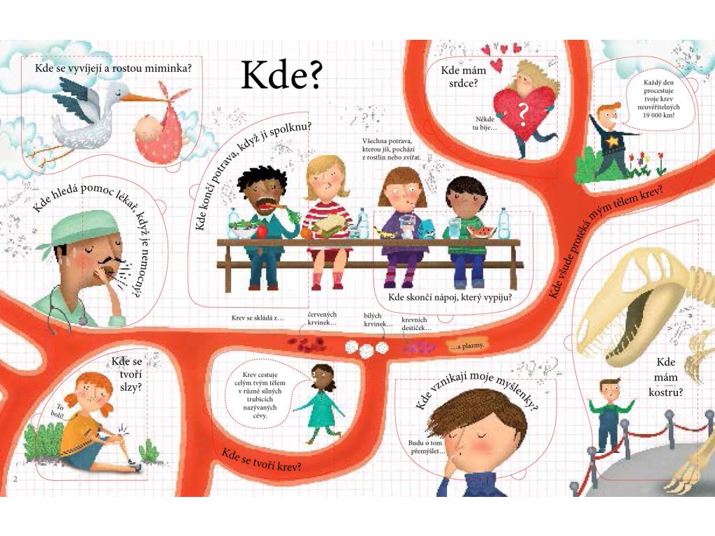Tato zábavná encyklopedická knížka nabízí malým čtenářům odpovědi na nejrozmanitější a nejčastější otázky, které se týkají fungování lidského těla. Stačí odklopit každé z více než 60 otevíracích okének a dozvíte se kdo, který, kdy, kde, co, jak a proč. V lidském těle se děje tolik zajímavého a je ještě tolik otázek, na které hledáme odpovědi. Proč si to trochu neusnadnit? S touto knížkou to půjde tak snadno!