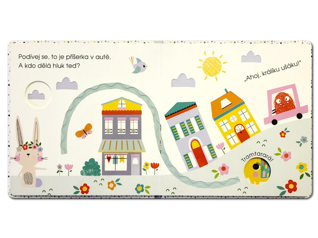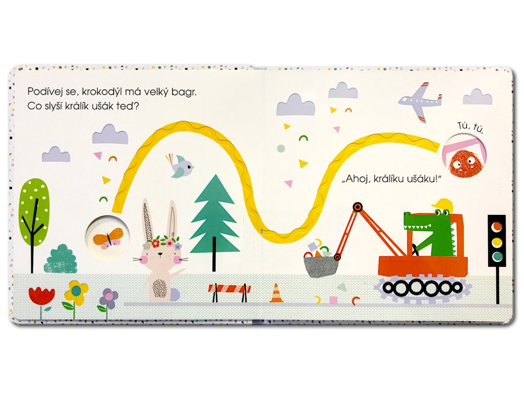 Co slyšel králík ušák svýma dlouhýma, nastraženýma ušima? Následuj prstíkem jeho trasu a třeba to uslyšíš také. Na své cestě slyšel králík ušák velký bagr, který pracoval, pozdravil se s příšerkou v autě a potkal troubícího slona. A nakonec? Byli tam všichni králíkovi kamarádi a všichni ho měli rádi! Kniha umožňuje nejmenším čtenářům poznávat svět po hmatu a upozorňuje je na zvukové vjemy, které může každý den vnímat kolem sebe. Neotřelé ilustrace podporují fantazii dětí a vtahují je do prostředí Městečka, které je plné kamarádských zvířátek. Dotykové prvky v knize rozvíjejí smysly a jemnou motoriku, výřezy v podobě okének nechávají malé čtenáře nakouknout na následující stránku, takže se vždy mohou těšit, co přijde a koho dalšího na cestě s králíkem ušákem potkají.Doplňkové parametry