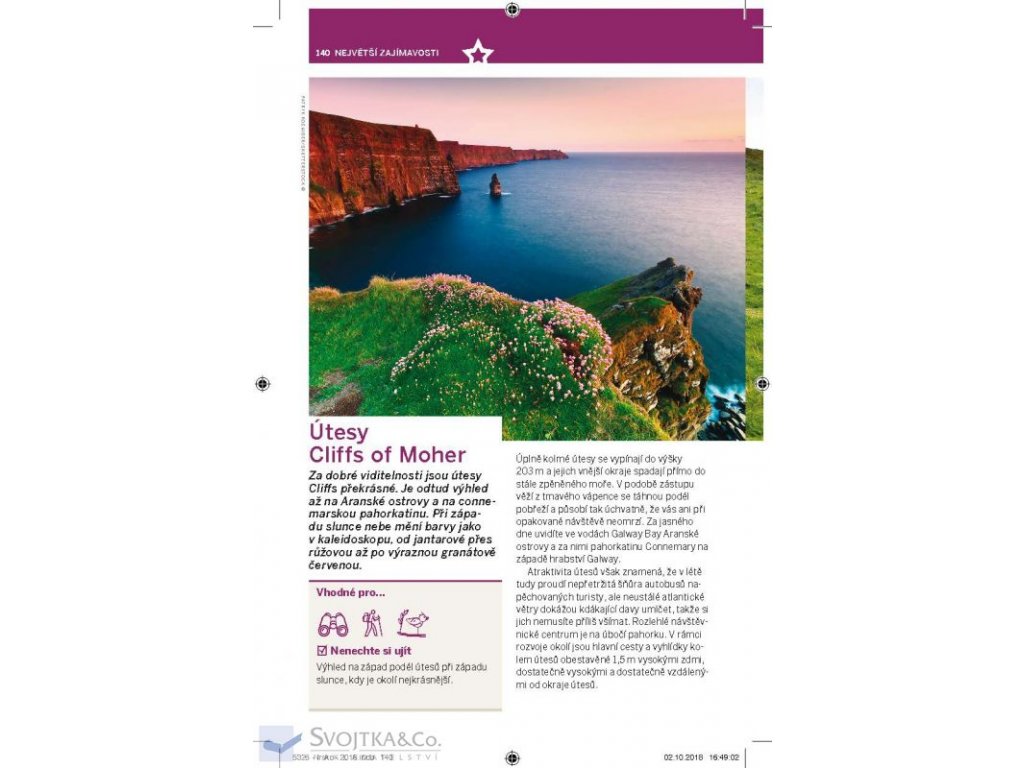 Irsko je rozlohou neveliké, ale své skvělé pověsti se těší zaslouženě: je tu úžasná krajina s přátelskými lidmi, jejichž lyrická povaha se projeví hned při vřelém uvítání.Popsali jsme nejzajímavější místa, navrhované trasy a místní tajemství do snadno použitelné podoby, pečlivě připravené našimi zkušenými autory.