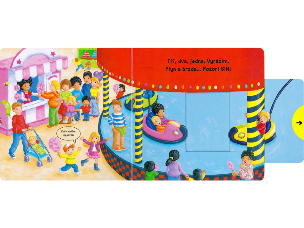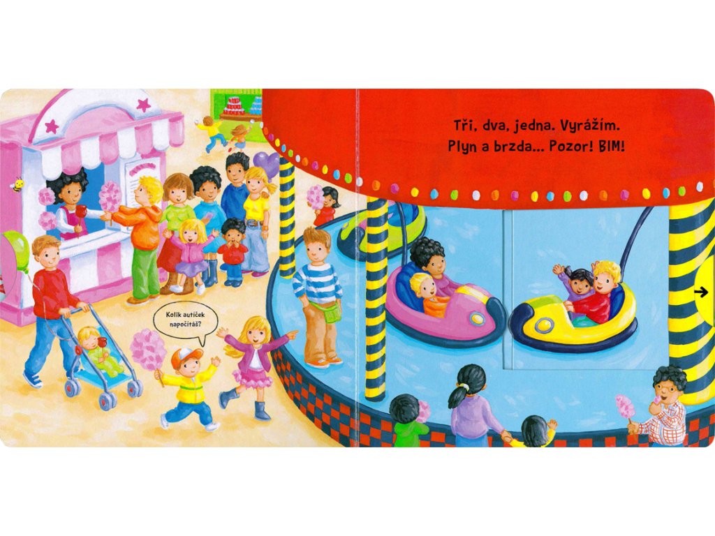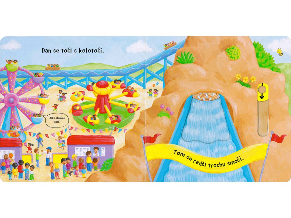 Zajímá tě, jak to žije v lunaparku? Toto dětské leporelo je určeno pro děti od jednoho roku. Má pevné stránky s posuvnými a otočnými prvky, a tak si dítě při prohlížení knížky současně procvičí jemnou motoriku - může na jednotlivých stránkách posouvat, tahat, otáčet. Objeví nové věci a můžete si o nich společně povídat!