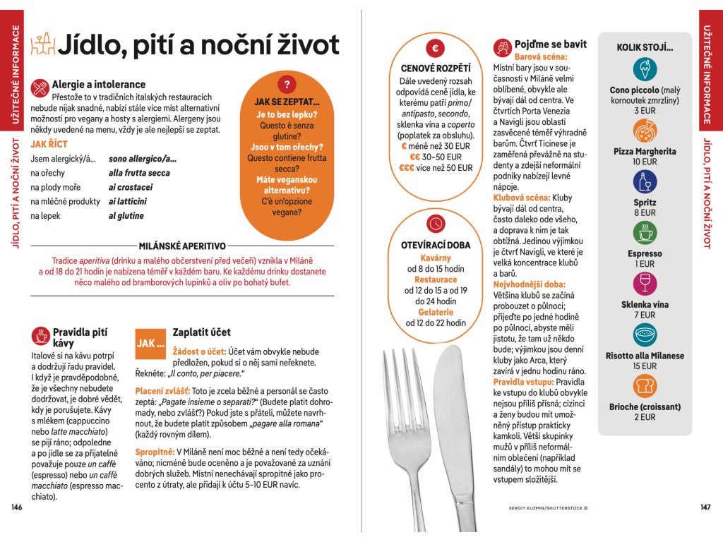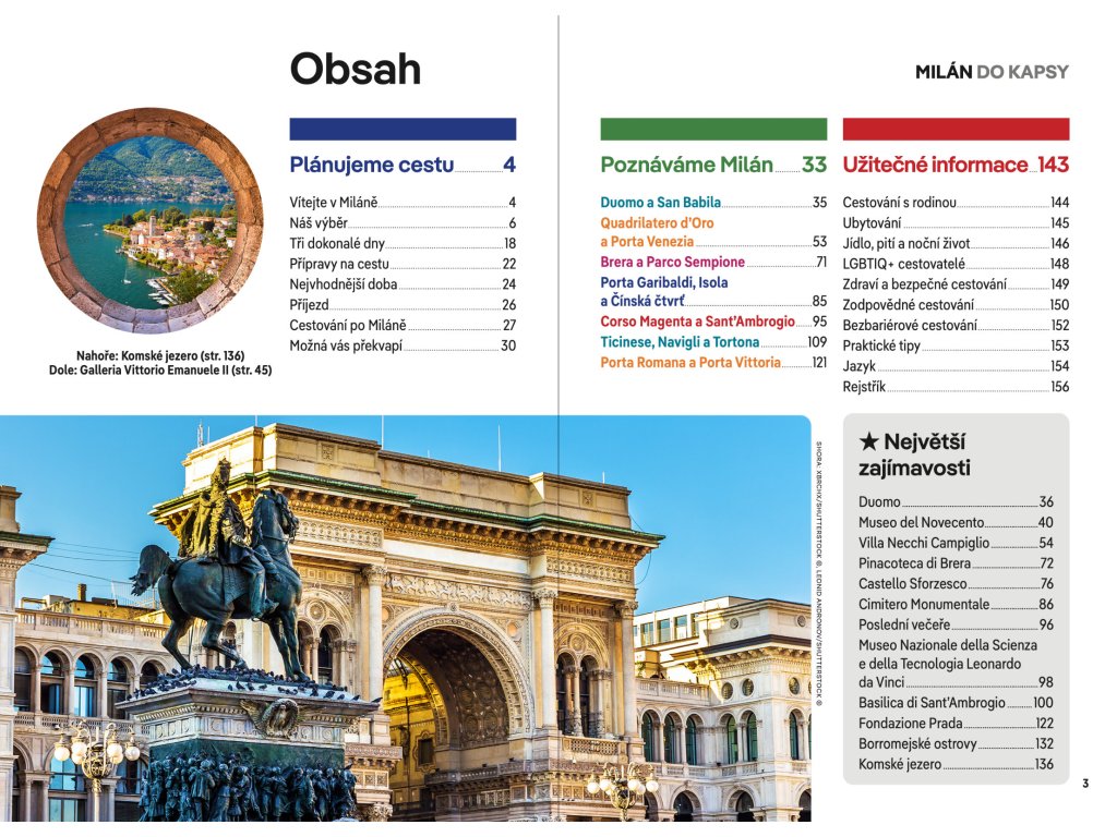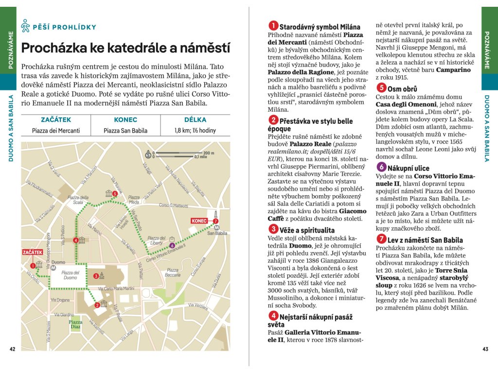 Součástí je také samostatná rozkládací mapa centra Milána s přehledem hlavních památek.