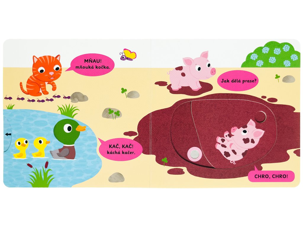 Objevovat svět zvuků s tímto leporelem je tak zábavné! Jak dělá kočka? Kdo kvoká na dvorku? A kdo chrochtá v blátě? Stačí jen vložit prstík do správného otvoru, lehce vysunout, zatáhnout, otočit ve směru šipky, stisknout tlačítko a hned bude váš malý objevitel či objevitelka znát odpovědi. Leporelo je určeno pro nejmenší děti a má pevné stránky s posuvnými a otočnými prvky, a tak si naši nejmenší mohou při prohlížení, rozeznávání věcí a poslouchání zvuků zvířat z farmy procvičit i jemnou motoriku.Knížka s prvky Montessori.