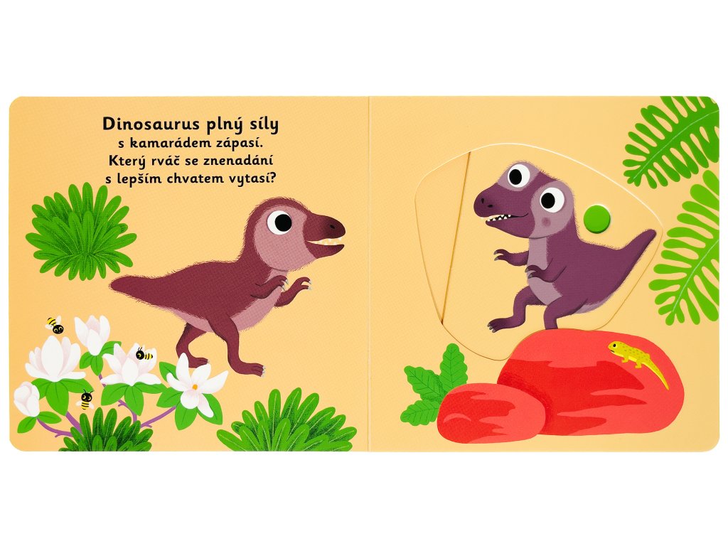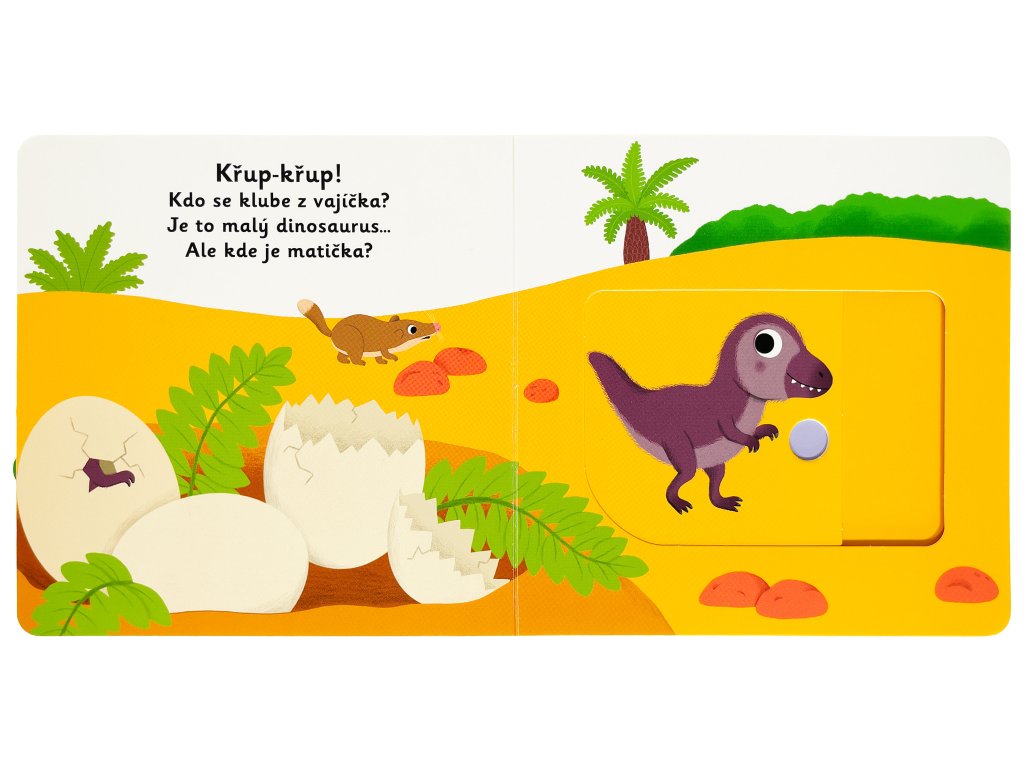 Dinosauřík odvážný samoty se neleká. Ví, že máma už se blíží. Ta je ale veliká! Poznejte příběh o malém dinosaurovi v tomto veršovaném leporelu s milými ilustracemi a pohyblivými prvky. Objevovat svět s tímto leporelem pro nejmenší děti od jednoho roku je tak zábavné! Pevné stránky s pohyblivými prvky procvičí i jemnou motoriku. Stačí jen vložit prstík do správného otvoru a lehce vysunout, zatáhnout nebo otočit a hned bude váš malý objevitel znát odpověď na to, jak probíhá den malého dinosaura.Knížka s prvky Montessori.