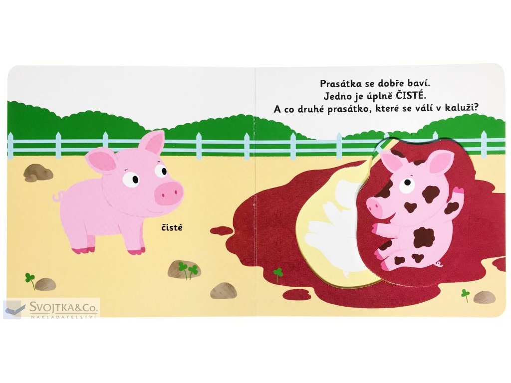 Pozorně se podívej na žirafu a její mládě. V čem se liší? A čím se odlišuje veselá holčička a smutný chlapeček? Naučte děti rozpoznávat protiklady a hravé puzzle jim pomohou v procvičování jemné motoriky a koordinace očí a rukou. Slož a zase rozlož. Prohlížejte si s dětmi jednoduché obrázky s pevnými stránkami, krátkými popisky a velkými kusy puzzle. Leporelo je vhodné pro nejmenší děti a zábavné puzzle dětem prohlížení a čtení mile oživí.Knížka s prvky Montessori.