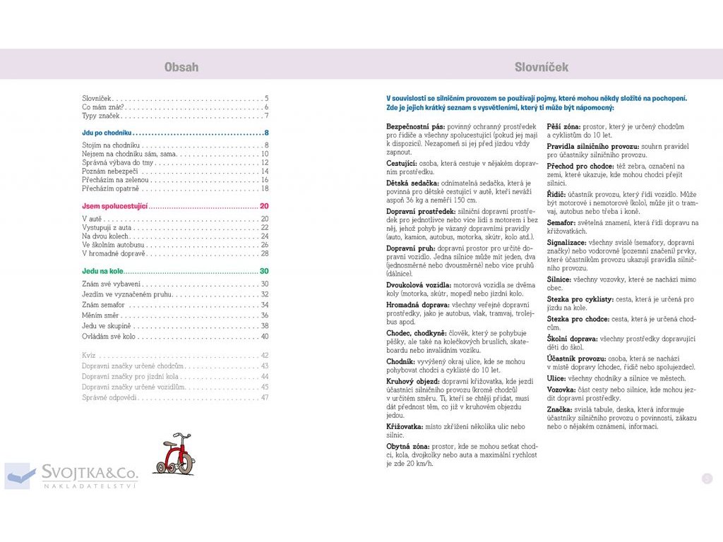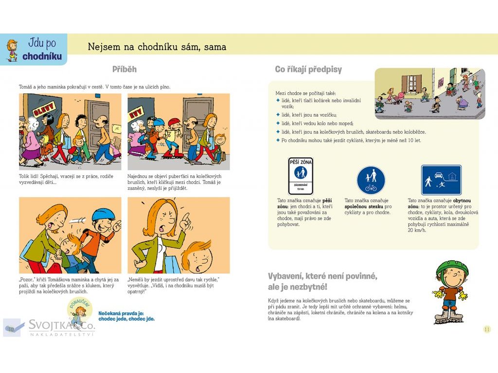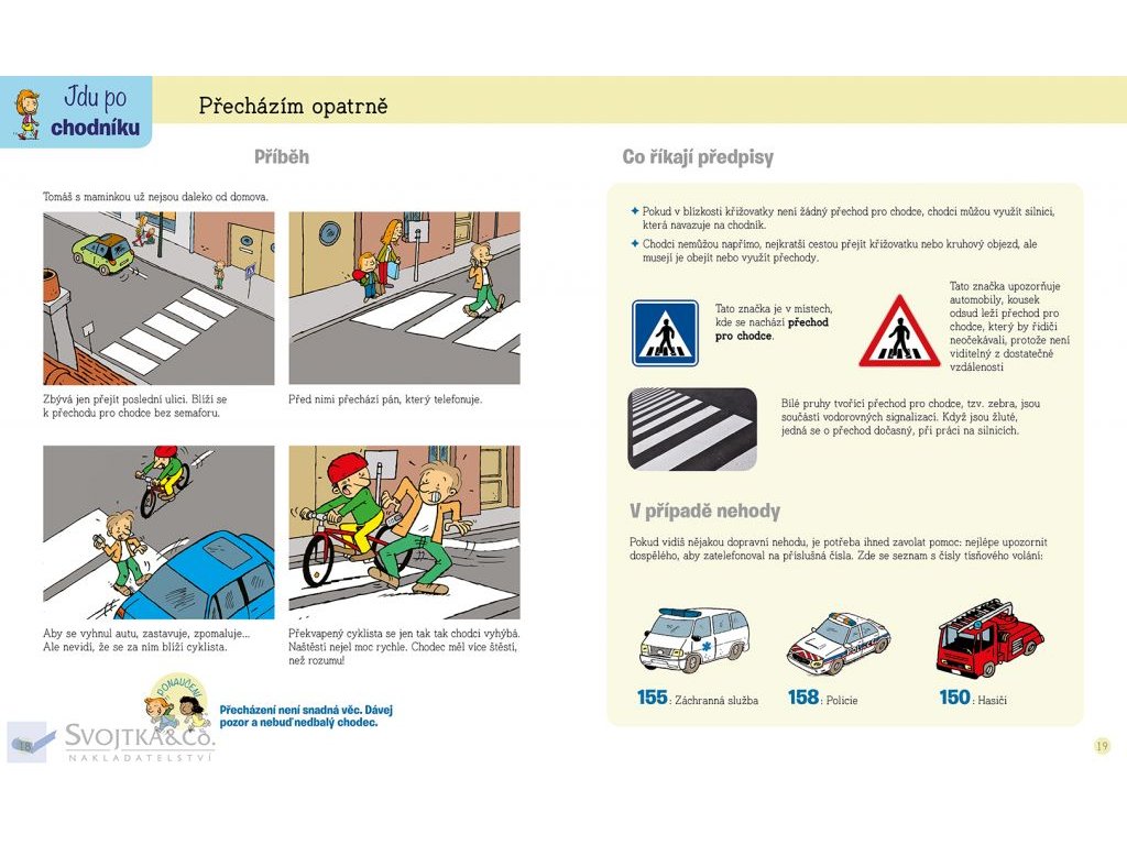 Díky této knížce se děti od 5 do 10 let naučí základy bezpečného chování na ulici – na chodníku i na vozovce. Poznají, jak se chovat ohleduplně v prostředcích hromadné dopravy a jak se správně vybavit na chůzi ve tmě či na výlet na kolech mimo město. Knížka obsahuje také seznam dopravních značek, jež se dětí budou týkat nejčastěji, a závěrečný kvíz pro ověření nabytých znalostí. Každá situace na silnici je představena ilustrovaným příběhem, prakticky zapojena do hry či aktivity a shrnuta jako zapamatovatelné ponaučení.