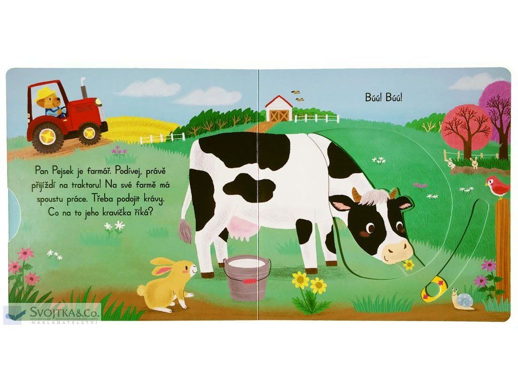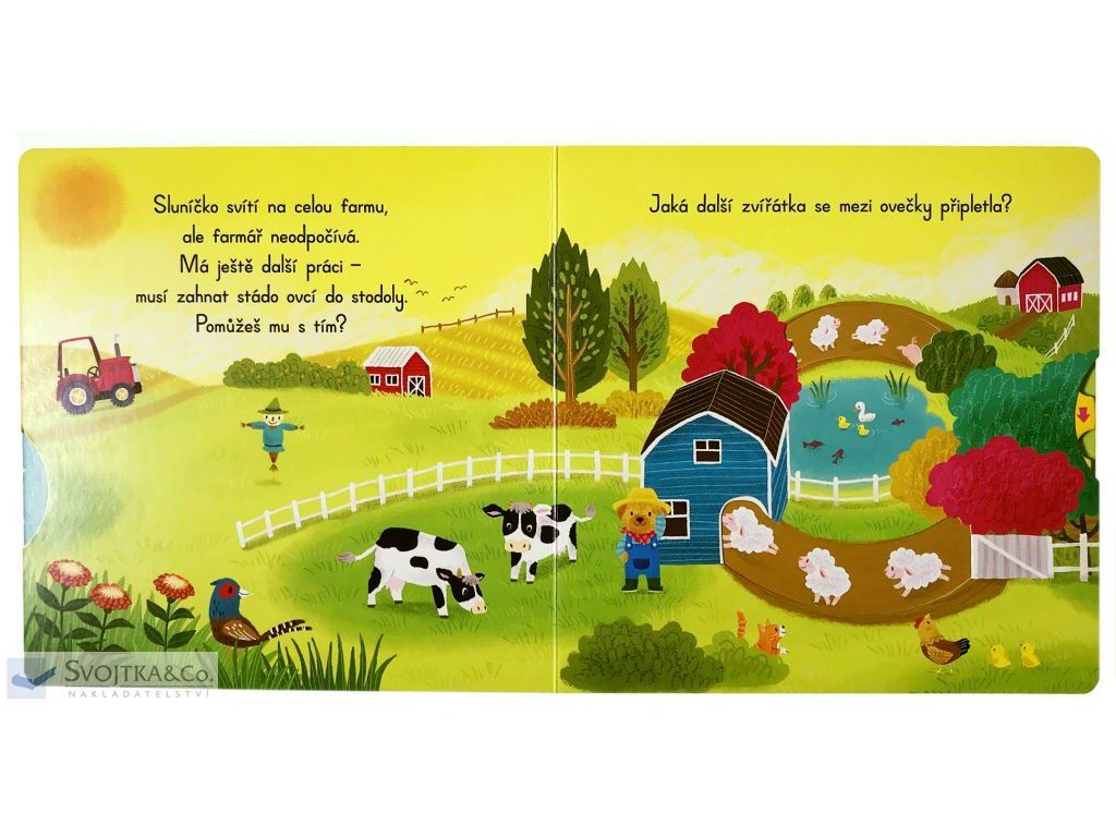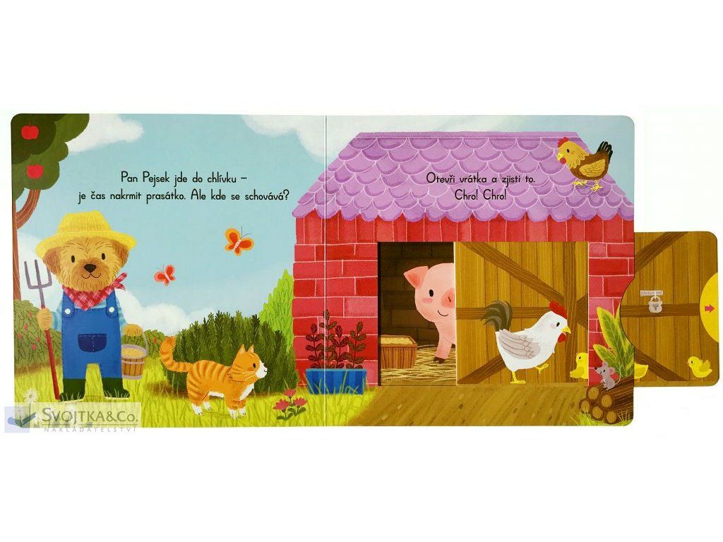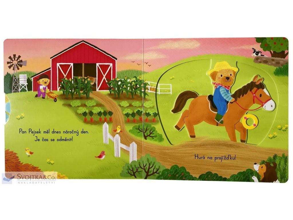 Máte rádi zvířátka? Pejsky, kravičky, prasátka a slepičky? Pak si tohle leporelo prostě zamilujete. Díky pevným vytahovacím okénkům si nejmenší děti zábavnou formou procvičí své jemné motorické schopnosti. Pan Pejsek má dnes na farmě spoustu práce! Co všechno ho čeká? Pomůžeš mu zahnat stádo ovcí do chléva? Tak pojďme na to!