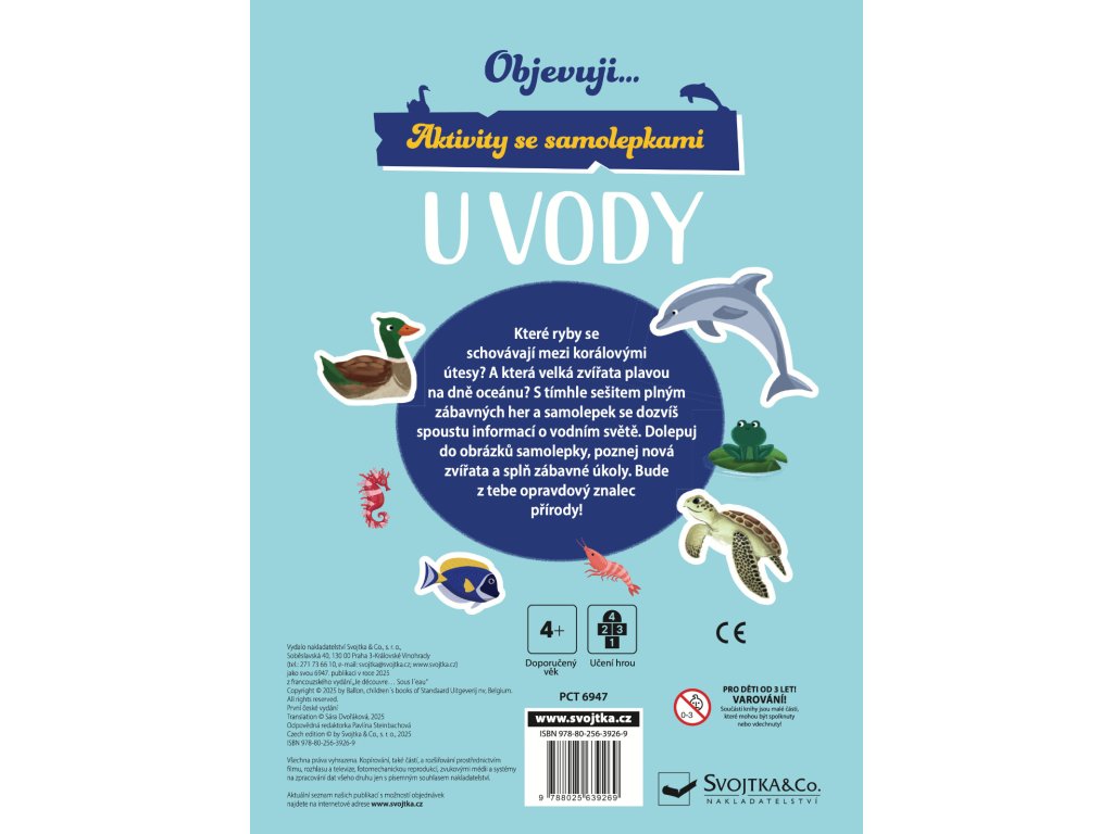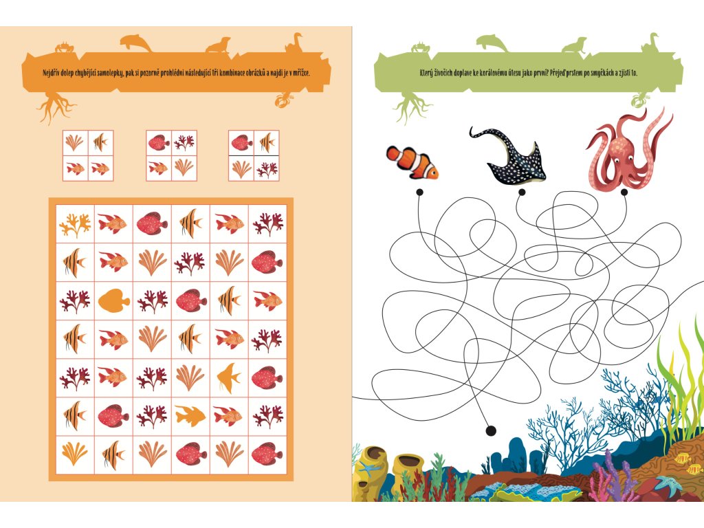S tímto sešitem plným zábavných her a samolepek se dozvíš spoustu informací o vodním světě. Zjisti, které ryby se schovávají mezi korálovými útesy a která velká zvířata plavou na dně oceánu. Dolepuj do obrázků samolepky, poznej nová zvířata a splň zábavné úkoly. Bude z tebe opravdový znalec přírody! Obsahuje znovupoužitelné samolepky.Doplňkové parametry