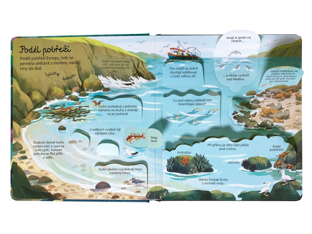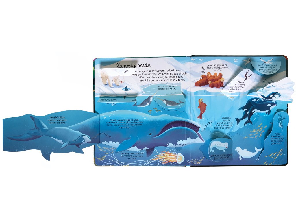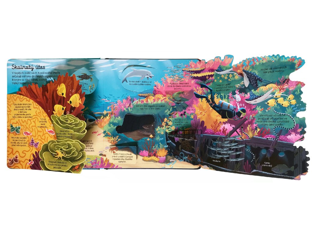 Ponořte se do podvodního světa plného úžasných, pestrobarevných tvorů. V tomto mořském království na vás čeká nespočet překvapení. Objevte je v této knížce s více než 50 odklápěcími okénky. Prozkoumejte pobřeží, korálové útesy, mangrovové lesy a zjistěte, kdo žije v těch nejhlubších částech oceánu, kam ani sluneční paprsky neproniknou...