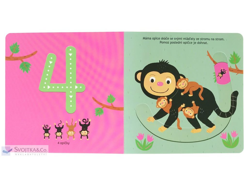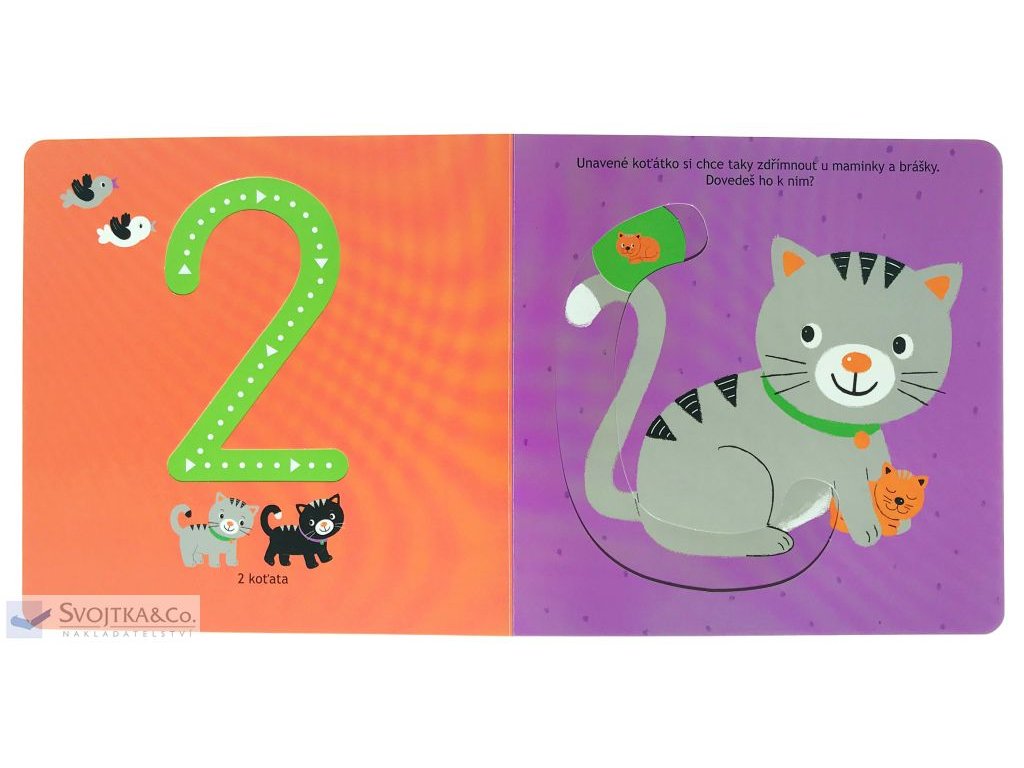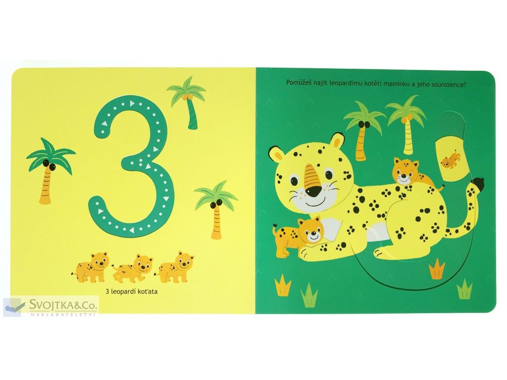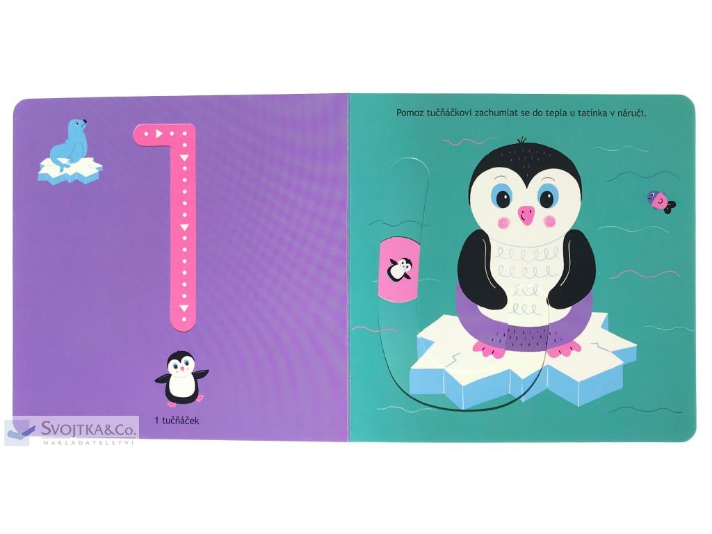 Malý tučňák hledá tatínka a koťátko maminku a brášku. Pomoz všem mláďátkům najít rodiče a sourozence pomocí pohyblivého kolečka. Kromě procvičení jemných motorických schopností si nejmenší děti osvojí i čísla od 1 do 5. Obtahováním číslic prstem ve vyznačené oblasti se tak děti seznámí s jejich tvary a připraví se tak na jejich samotné psaní. Zábavné leporelo s krásnými ilustracemi děti nejen zaujme, ale i poučí.