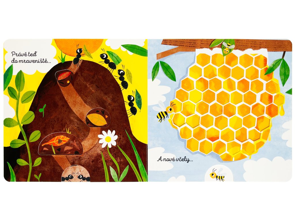 Knížka pro malé zvídavé děti objevující svět, který je obklopuje a je plný zábavy. Obsahuje plno interaktivních prvků, různé materiály a pohyblivé části.