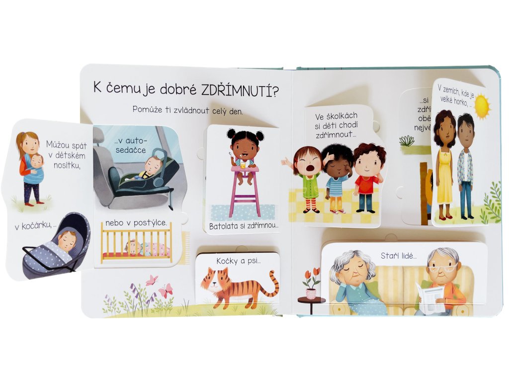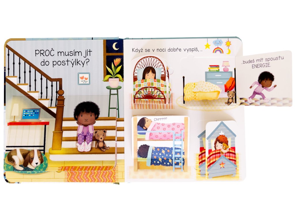 Kde spí zvířátka? K čemu je dobré zdřímnutí? A proč je tma, když jdeme spát? Tato ilustrovaná knížka s odklápěcími okénky srozumitelnou formou dětem vysvětluje, proč je spánek nedílnou součástí každého dne. Vysvětluje, proč je důležité dbát na pravidelný a pořádný spánek, proč je naše postýlka pro spánek to nejlepší místo, a také uvádí rady, co je dobré dělat před spaním. Nahlédneme i do říše zvířat a zjistíme, jak spí oni a co je pro ně nejlepší. Díky tomuto krásně ilustrovanému leporelu bude příprava na spánek a usínání vaše příjemně strávená společná chvíle.Doplňkové parametry