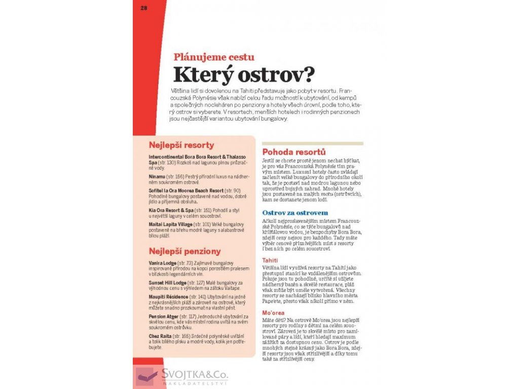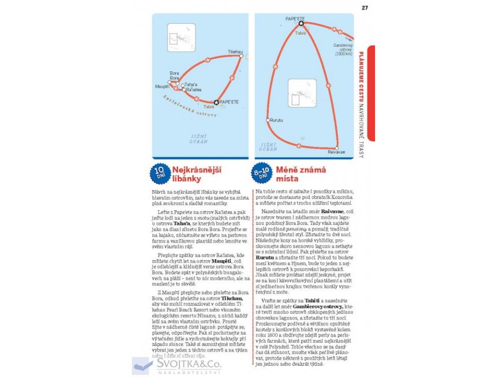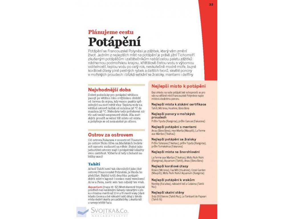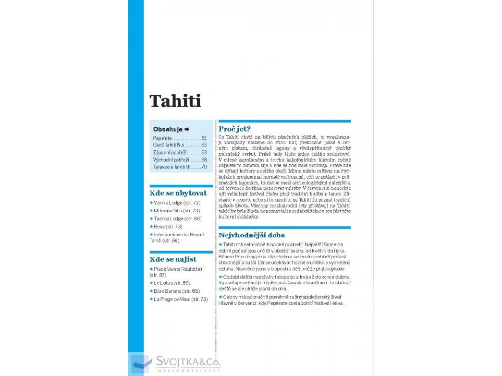 "Francouzská Polynésie je korunovaná mechem porostlými vrcholky zdvihajícími hlavu k modré obloze a posetá nádhernými tyrkysovými lagunami. Je to prohřáté místo, kde se vyplatí zpomalit a do dna vychutnat zdejší přívětivou neuspěchanou ostrovní kulturu."