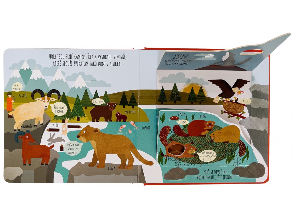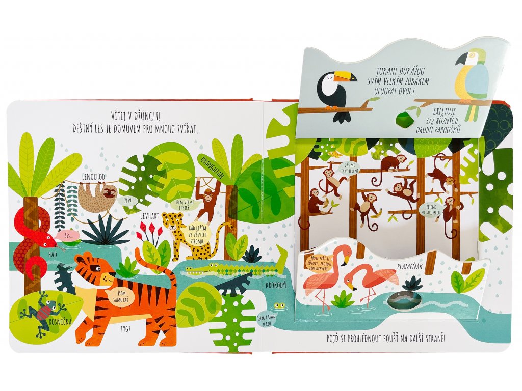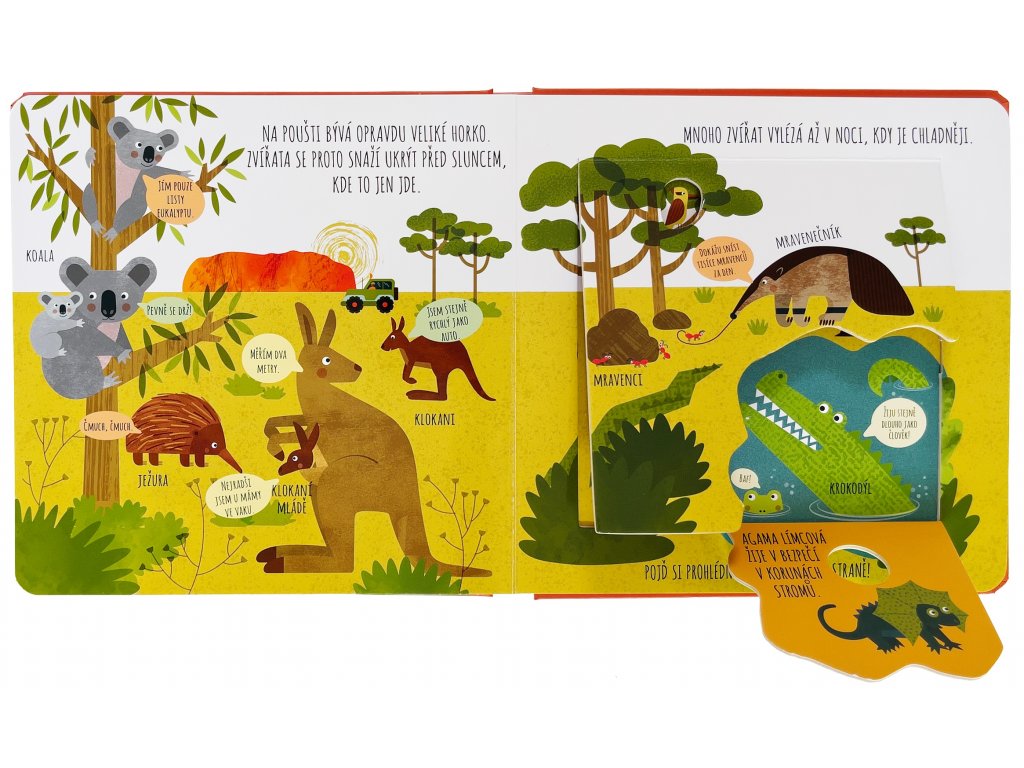 Vítej v divočině a pojď se seznámit se všemi zvířaty, která tu žijí. Kdo se to vyvaluje u napajedla? Kdo se schovává mezi listy eukalyptu a kdo to šplhá po horách? Kapybary, surikaty, chameleoni, tygři, hroši a další kamarádi čekají v tomto roztomile ilustrovaném leporelu, které děti provede divočinou celého světa a představí jim úžasná a zajímavá zvířata. Jednoduché popisky a poučné informace pod okénky nadchnou každého malého zvědavce a nadšence do přírody!Doplňkové parametry