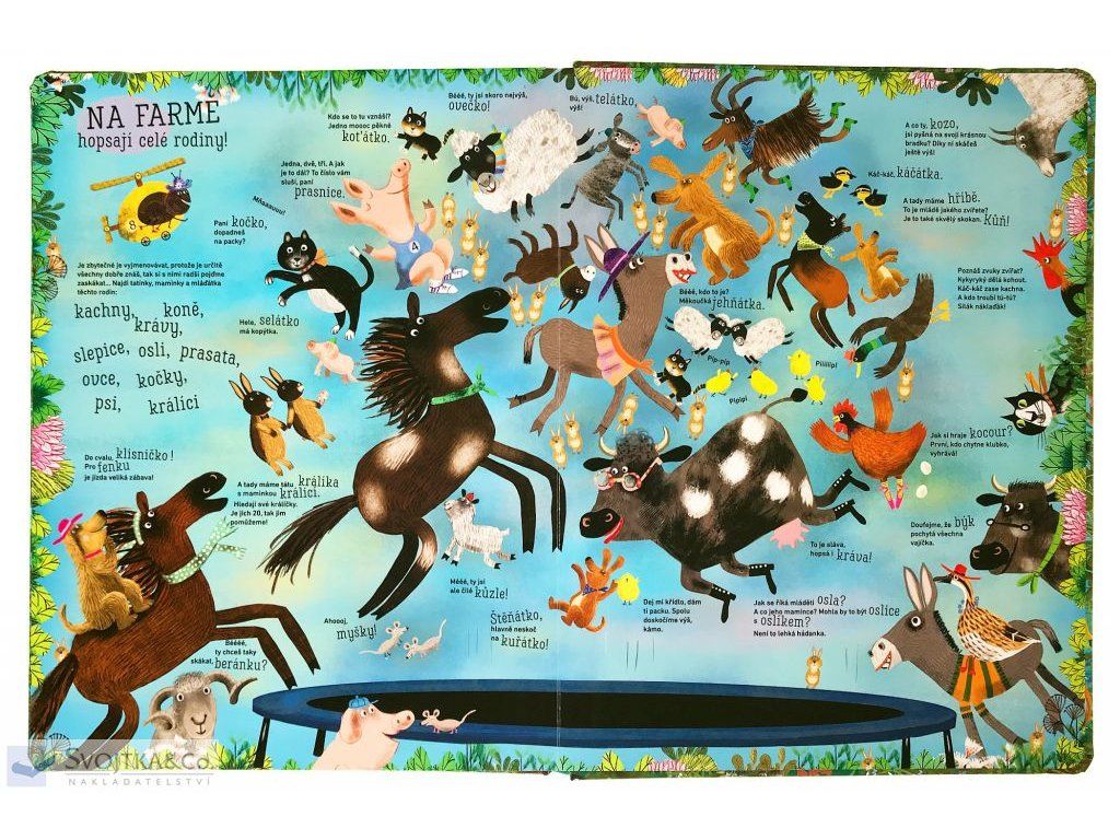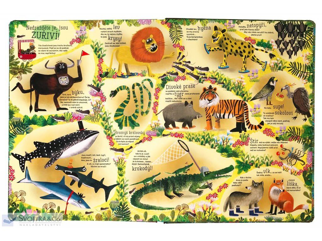 Představujeme vám jednu z našich největších knih. Na výšku má bez 10 cm skoro půl metru. Když ji rozložíš na podlahu, klidně si na ni můžeš lehnout, prohlížet a hledat. A co? No hádejte, o kom je řeč? Přece o ZVÍŘATECH! Jsou prťavá, nebo obrovská. Vypadají naštvaně, nebo legračně. Ráda létají, nebo se cachtají ve vodě. Jsou úžasná, mimořádná, zkrátka super! Ať se podíváš kamkoliv, v této veliké, ale opravdu veliké knize, jich je spousta, spousta… v poněkud neobvyklých situacích!Doplňkové parametry