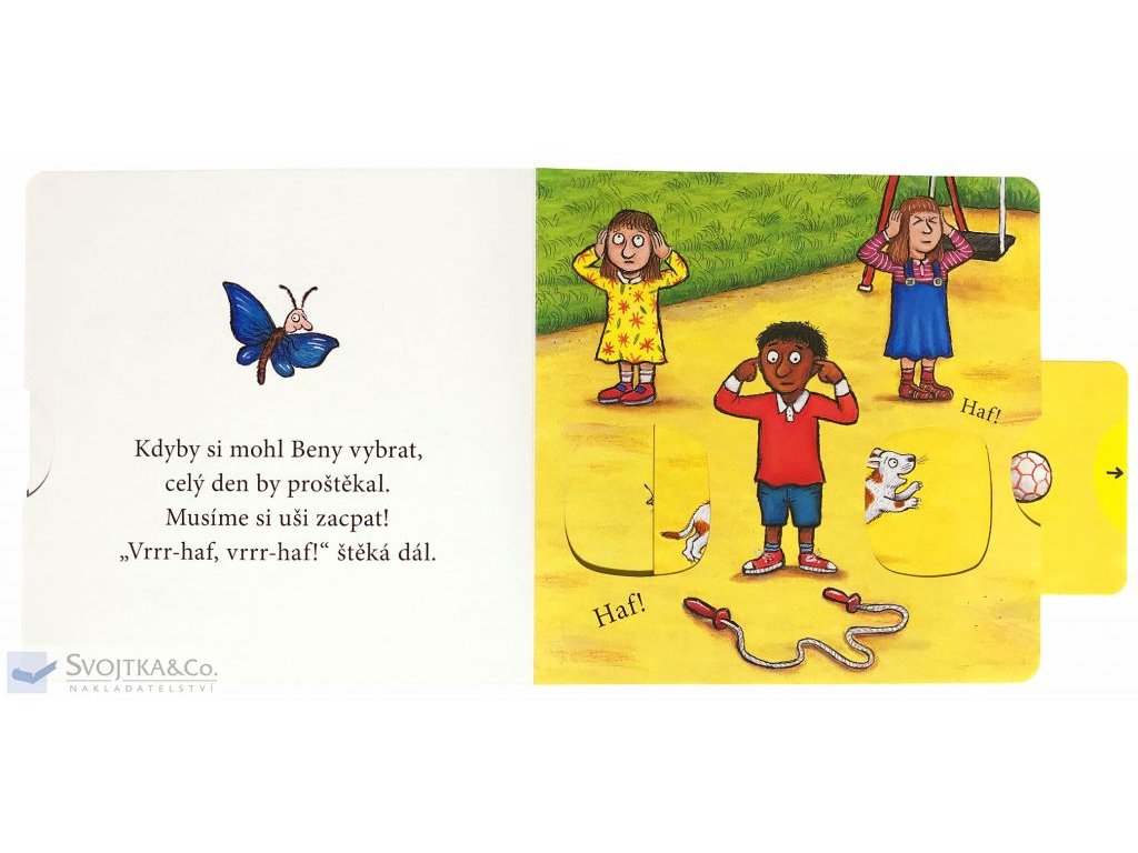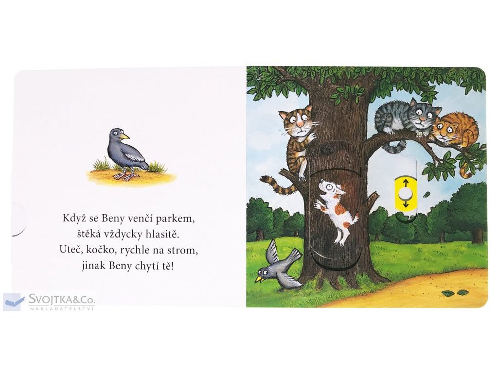 Beny štěká na kočky, na pošťáka, na děti. Je to veselý pejsek, který je rád na světě, a nikdy nemá daleko k tomu provést nějakou lotrovinu. Milé verše o tomto uštěkaném štěňátku doprovází obrázky známého kreslíře Axela Schefflera, ilustrátora Gruffala. Obrázky se dají oživit zasunutím prstíku do otvoru a posunutím nebo otočením správným směrem. Nechejte děti, ať si hravou formou procvičují jemnou motoriku, a prohlížejte si leporelo spolu s nimi.
