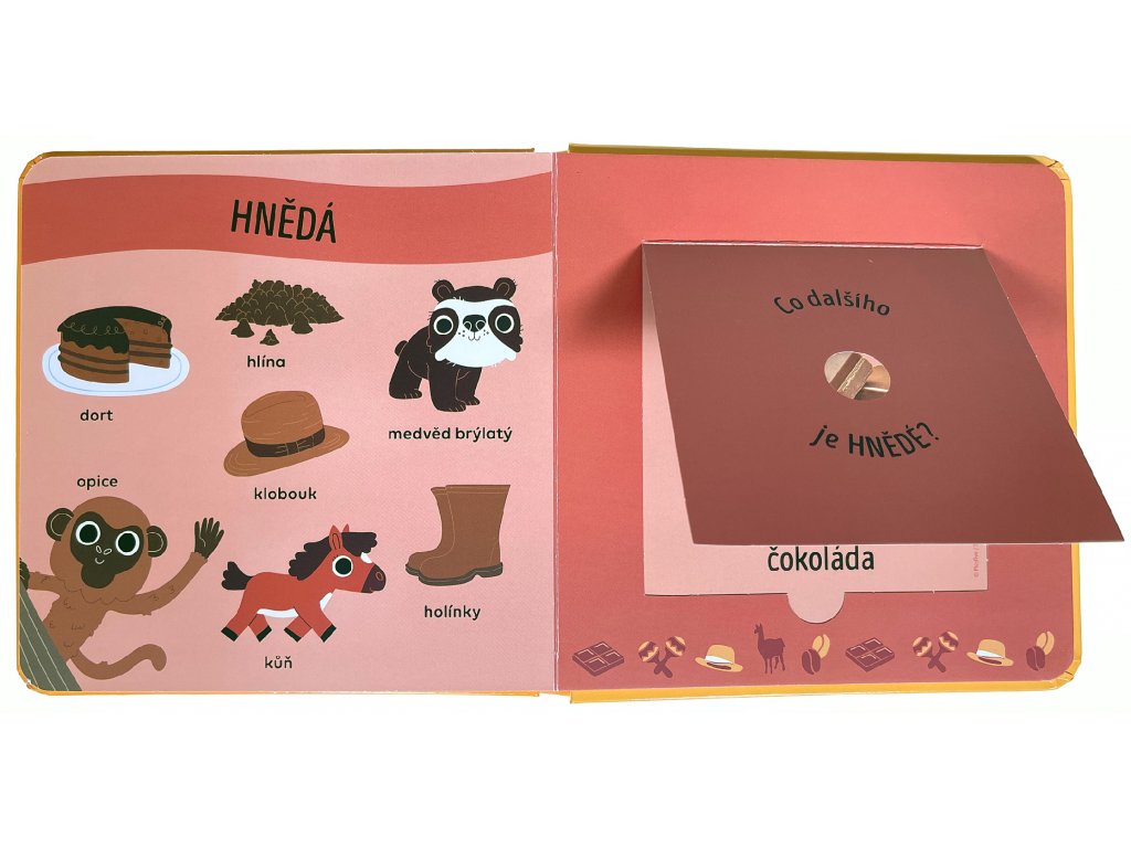 Nauč se poznávat a pojmenovávat jednotlivé barvy i předměty. Přetři daný obrázek rukou, uvolni vůni a zjisti, co se ukrývá pod okénkem. Toto voňavé leporelo děti seznámí s různými předměty, potravinami a zvířaty z celého světa.