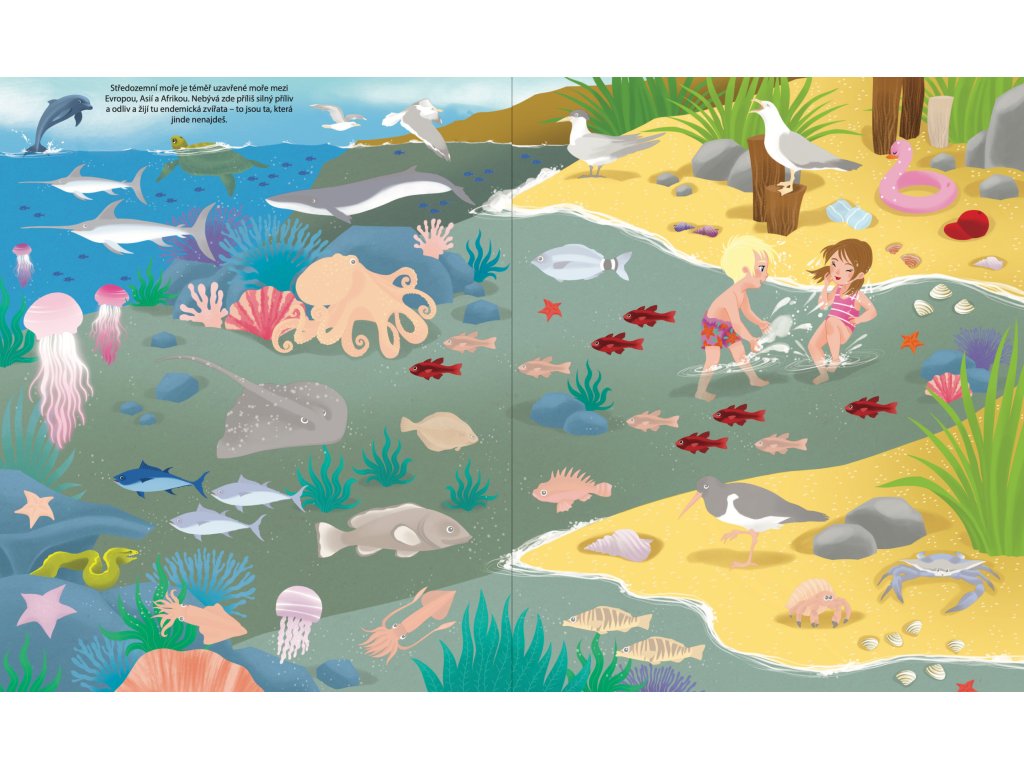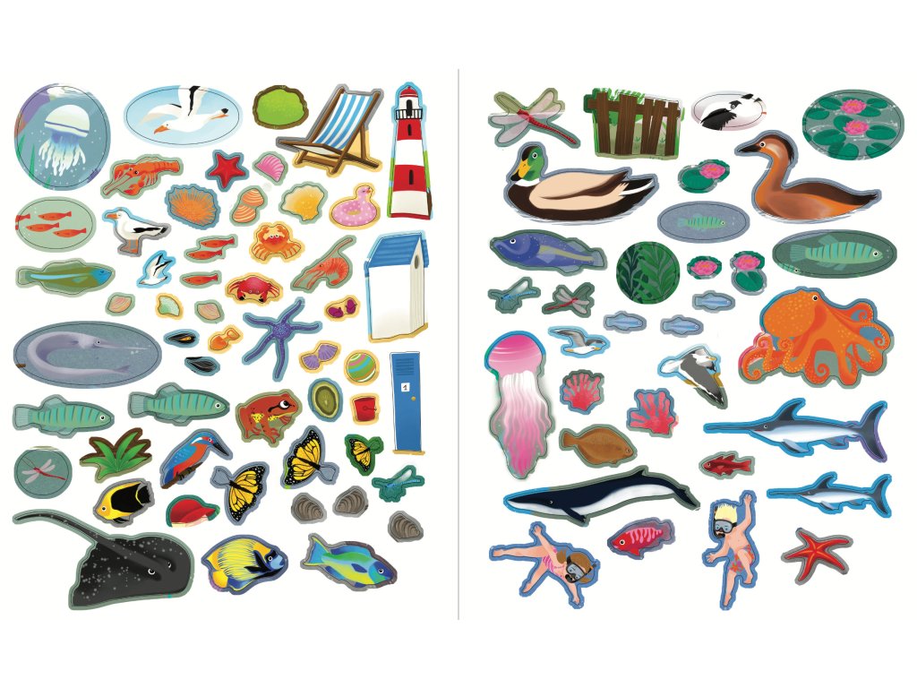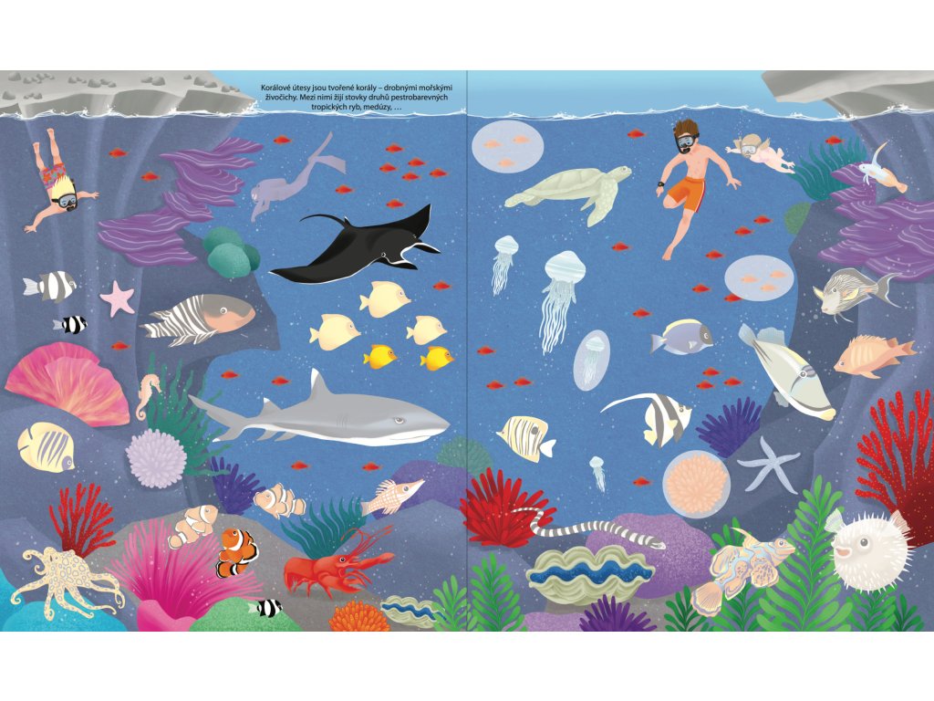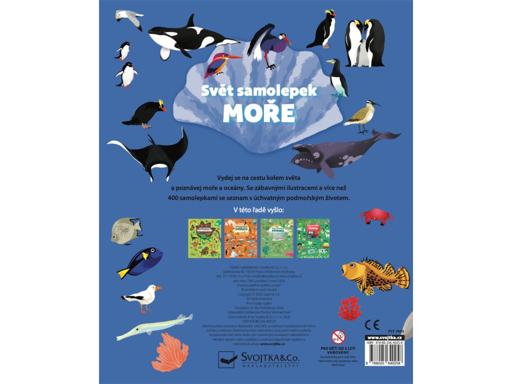 Vydej se na neuvěřitelnou cestu kolem světa a objev všechna moře a oceány. Samolepkovým sešitem tě budou provázet Tomáš a Mia a společně s nimi zjistíš, že moře není všude stejné. Listuj sešitem, prohlížej si rozmanité scenérie od pobřeží na severním pólu přes korálové útesy až po mangrovové lesy a nalep do nich více než 400 samolepek! Tato samolepková knížka je ideální pomůcka pro děti, které chtějí získat základní znalosti o rozmanitém prostředí a fungování naší planety. Zábavné učení může začít! Nalep na stránky samolepky a poznej úchvatný podmořský svět a život u vody.Doplňkové parametry
