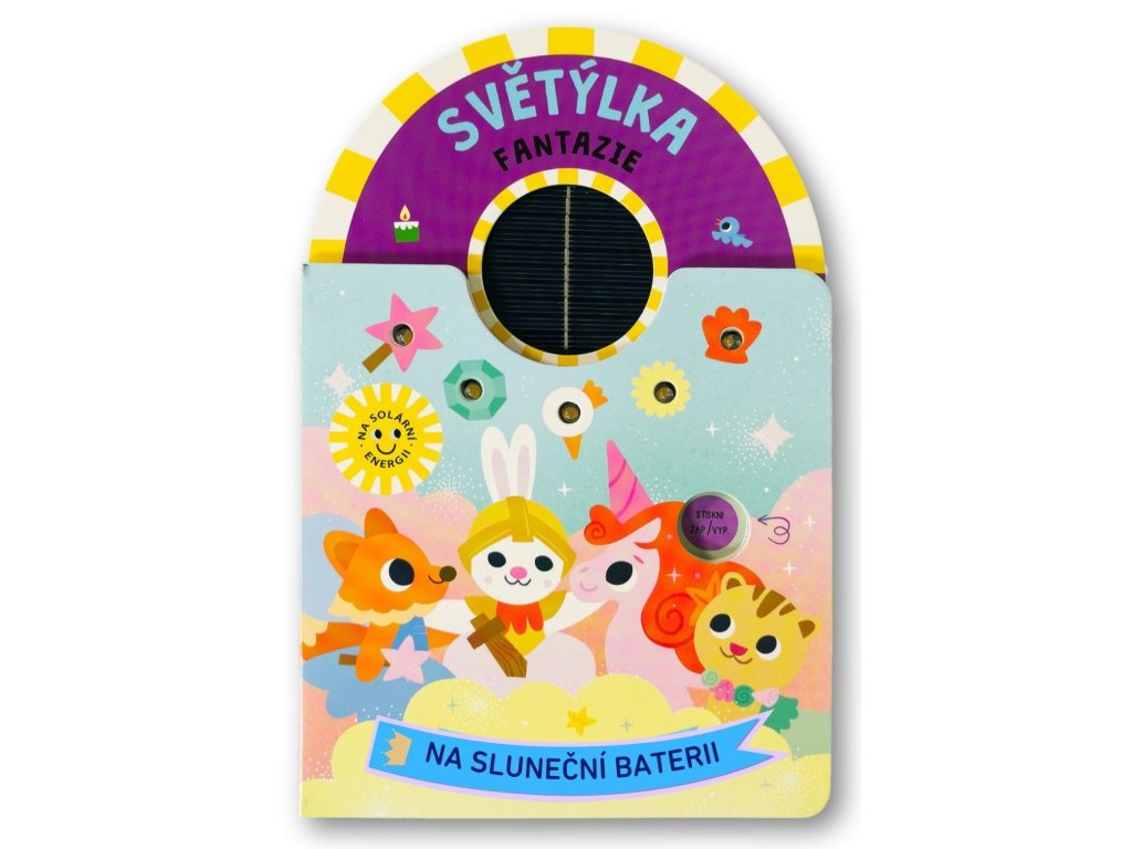 Jednorožec na duze, kouzelná liška, princové i mořské víly - svět fantazie ožívá v této magické knížce plné světýlek. LED žárovičky se po stisknutí tlačítka jemně rozzáří nad obrázky, jako svítící drahokamy, sladkosti či kouzelné hůlky. Jejich teplé světlo nebodá do očí, příjemně pomalu problikává a navozuje klidnou atmosféru, ideální k večernímu usínání. Díky napájení solární energií není potřeba žádná baterie - stačí knihu dát na sluníčko. Veršované texty a barevné ilustrace podpoří představivost i radost ze společného čtení.Doplňkové parametry