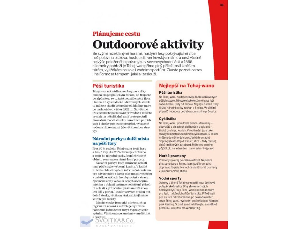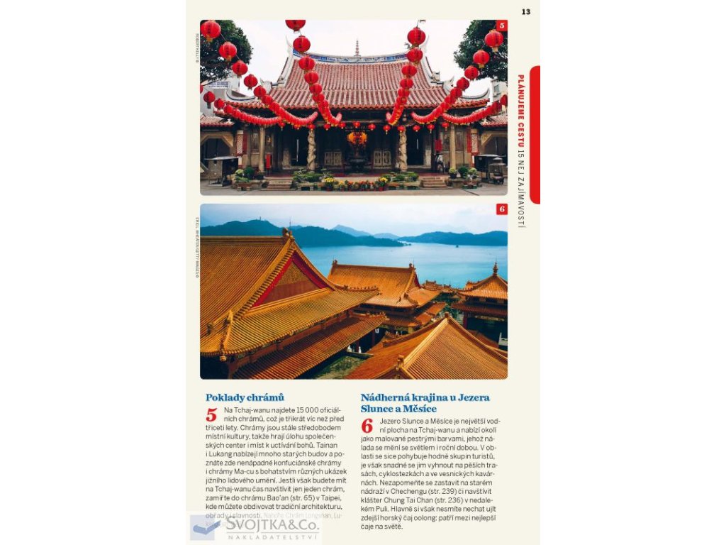 Se svou po celý rok nádhernou krajinou, hlavním městem, jež přetéká kulturním dědictvím, různorodými lidovými tradicemi i živým děním na nočních trzích nabízí Tchaj-wan seznam cestovatelských zajímavostí, který by pokryl celý kontinent. Všechno se však vejde na jediný smaragdový ostrov.