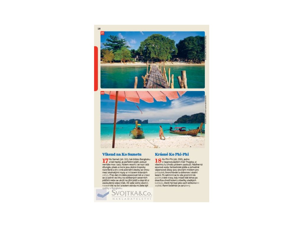 "Zátoky s jemně zbarveným pískem, bavlněné hamaky lenivě se pohupující mezi kmeny palem, krasové formace podobné hradům vynořující se z hlubin. Tyto sny o tropickém ráji jsou na pobřeží jižního Thajska realitou."