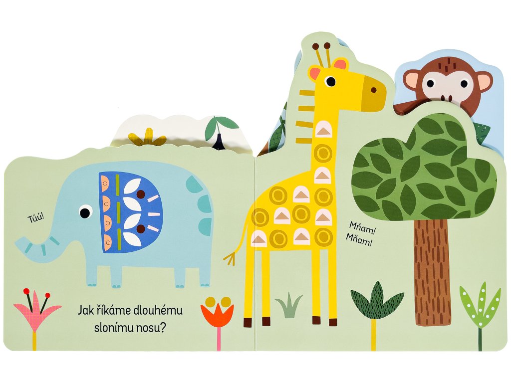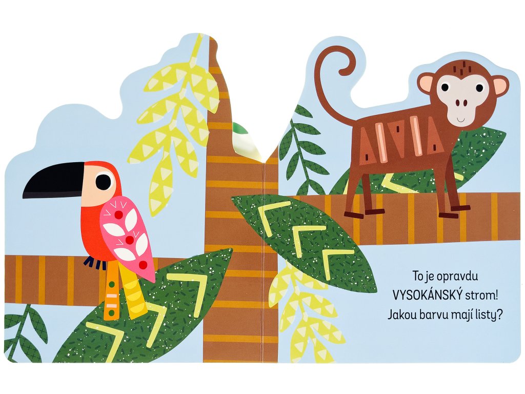 Zjisti, co všechno se děje v džungli, v této zajímavě pojaté knížce. Leporelo má různě tvarované stránky, které zaujmou především dětské prstíky. Zpod dalších stránek vykukují obrázky, které vzbudí u malých čtenářů zvědavost - co asi bude na další a další stránce? Kniha s milými ilustracemi obsahuje popisky zvířat z džungle a doplňující otázky, a tak si můžete s dítětem povídat o těchto exotických zvířatech a pomáhat mu rozšiřovat slovní zásobu a rozvíjet fantazii.Doplňkové parametry