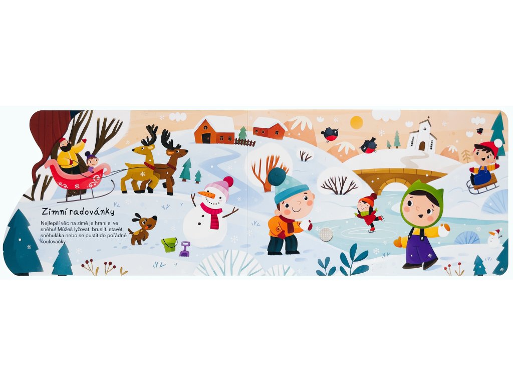 Kniha o přírodě nabízí propracované obrázky, zajímavosti o čtyřech ročních obdobích a proměnách přírody, kvízy a samolepky k nalepení.