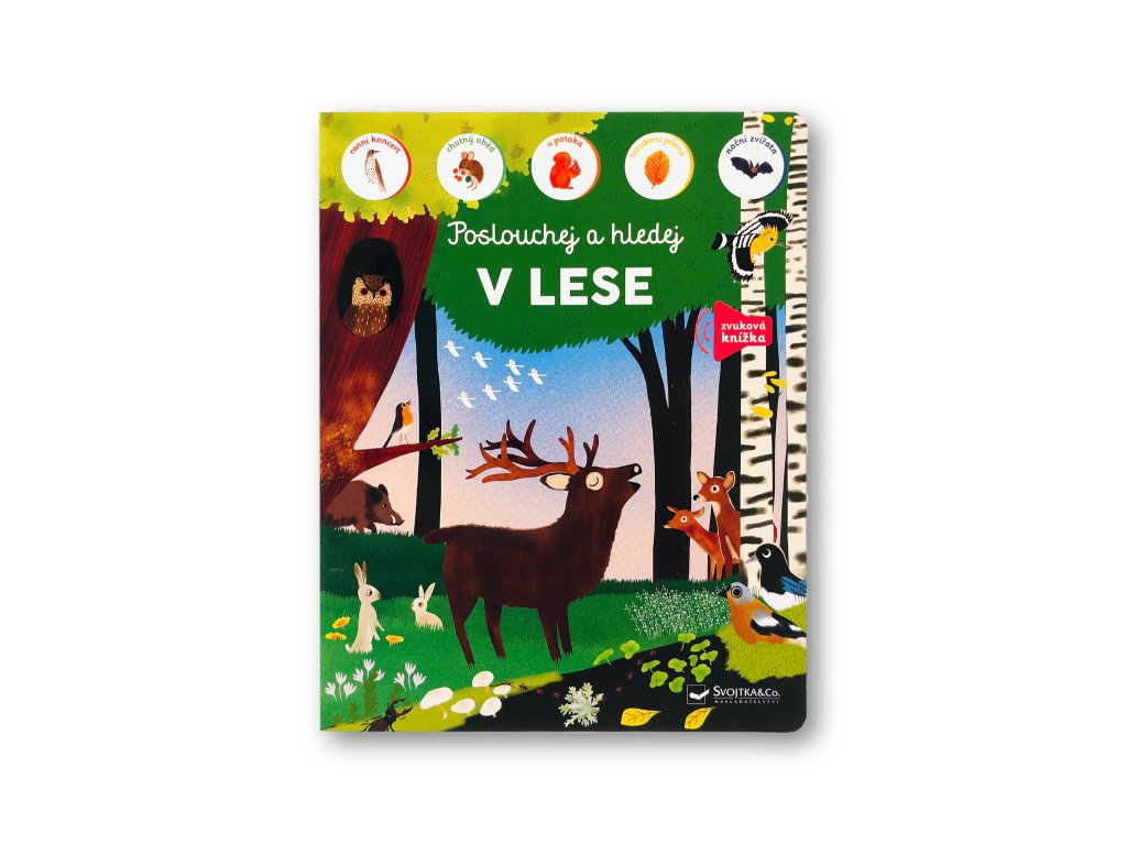 Hledej a poznávej s touto zvukovou knihou zvířata z lesa! Poslechni si ranní koncert, troubení jelenů či vlčí vytí. Seznam se s lesem a jeho obyvateli a zjisti i pár zajímavých informací. Na každé straně této krásně ilustrované knížky poslouchej nejrůznější zvuky a poznej, která zvířata je vydávají. Ale neboj! Dostaneš k tomu i nápovědy a i zde se dozvíš další zajímavosti z lesa a ze zvířecí říše.