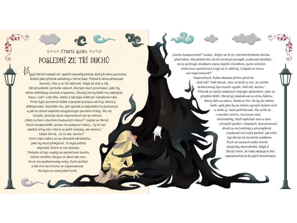 Prožijte kouzlo Vánoc s novým vydáním nadčasové klasiky Vánoční koleda od Charlese Dickense. Tento milovaný příběh o chamtivém Ebenezeru Skružovi byl citlivě převyprávěn pro mladší čtenáře a doplněn neuvěřitelně bohatými, živými a veselými ilustracemi. O Štědrém večeru Skruže navštíví tři tajemní duchové - Duch minulých, současných a budoucích Vánoc. Vezmou ho na nezapomenutelnou cestu časem, která mu pomůže znovu objevit pravý smysl vánočních svátků: radost, lásku a štědrost. Ponořte se do tohoto dojemného příběhu o proměně, který přináší důležité poselství o lidskosti a naději. Ideální vánoční čtení pro celou rodinu!Doplňkové parametry
