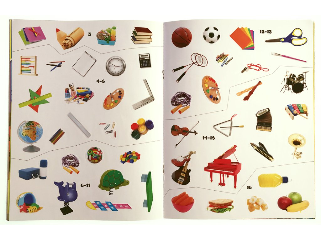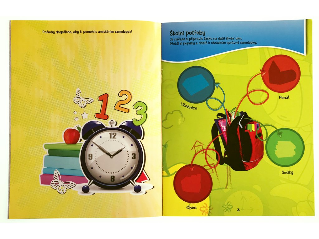 Nasaď si školní brašnu a hurá do školy! Nauč se poznávat školní aktivity a pomůcky... Se vším se nejlépe seznámíš, když s pomocí více než 50 opakovaně použitelných samolepek splníš zadané úkoly a vyluštíš všechny hádanky. Na poslední stránce si potom můžeš vytvořit svoje vlastní samolepkové dobrodružství.