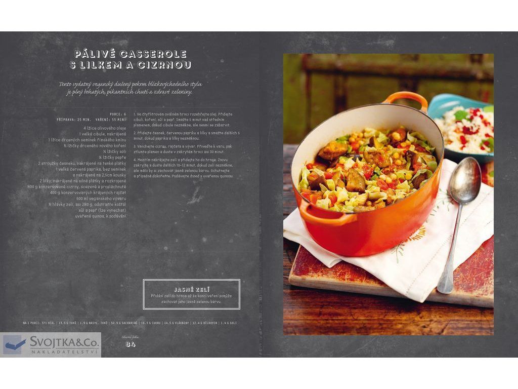 Veganská strava je založená na surovinách rostlinného původů, se spoustou barev a výživných látek. Naučte se připravit skvělé jídlo, které nejen dobře chutná, ale prospěje i vašemu zdraví. Prostřednictvím spousty jednoduchých receptů vám ukážeme, že zdravé veganské stravování není nudné ani nijak omezující. Ať už jste vegan, vegetarián nebo prostě jen chcete vyzkoušet něco nového, pokrmy z této kuchařky vám ukážou, jak lahodná a pestrá může veganská strava být.Doplňkové parametry