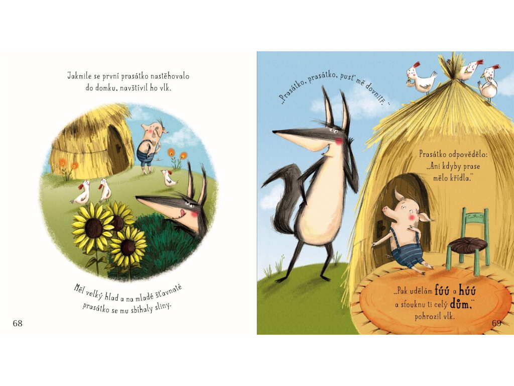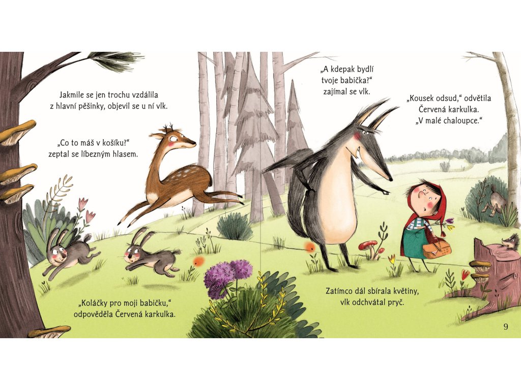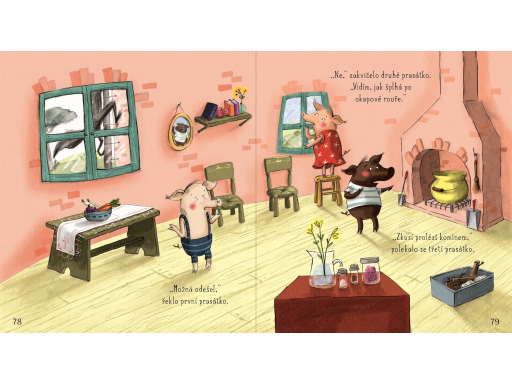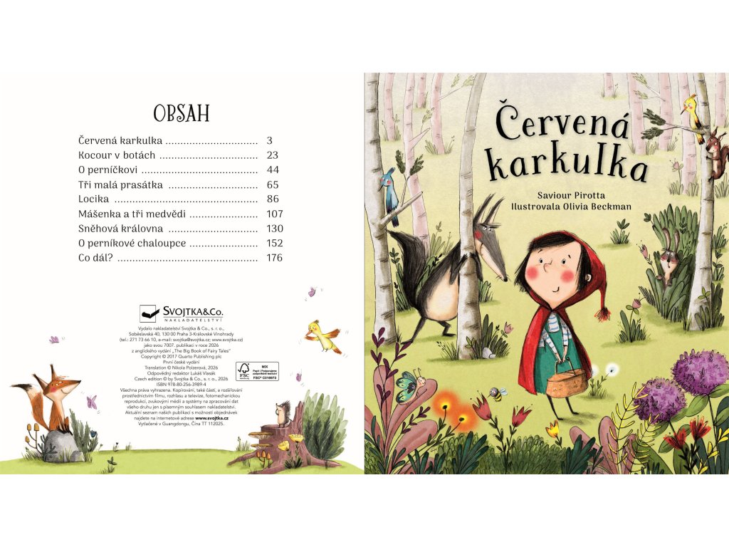 Bohatě ilustrovaná sbírka osmi klasických příběhů, převyprávěných jednoduše a srozumitelně pro mladší děti. Obsahuje Červenou karkulku, Kocoura v botách, Tři malá prasátka, Sněhovou královnu a další známé příběhy – ideální na společné čtení před spaním i během dne. Krátké kapitoly se dobře čtou předškolákům i mladším školákům, text doplňují výrazné ilustrace plné detailů k povídání. Na konci knihy navíc čeká část „Co dál?“ s jednoduchými tipy pro rodiče, prarodiče i učitele, jak s dětmi mluvit o hrdinech a padouších, emocích, co jim příběhy připomínají a jak si zkusit vymyslet vlastní konce pohádek.Doplňkové parametry