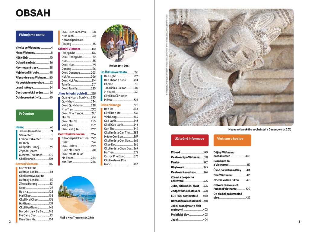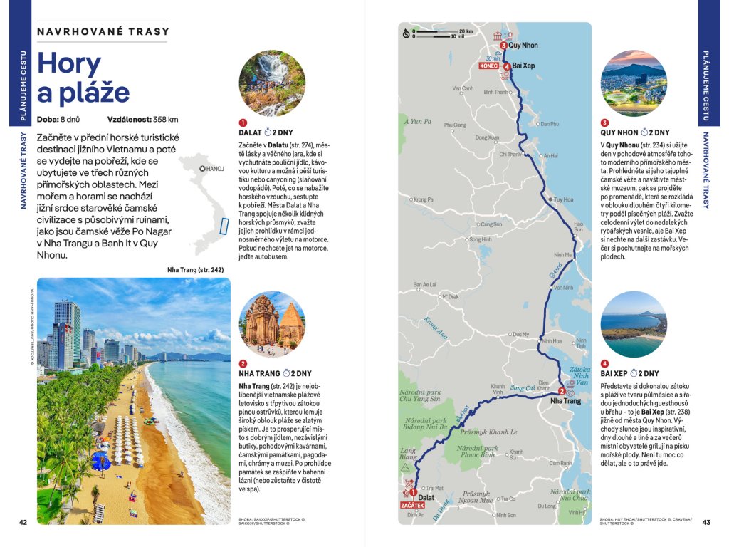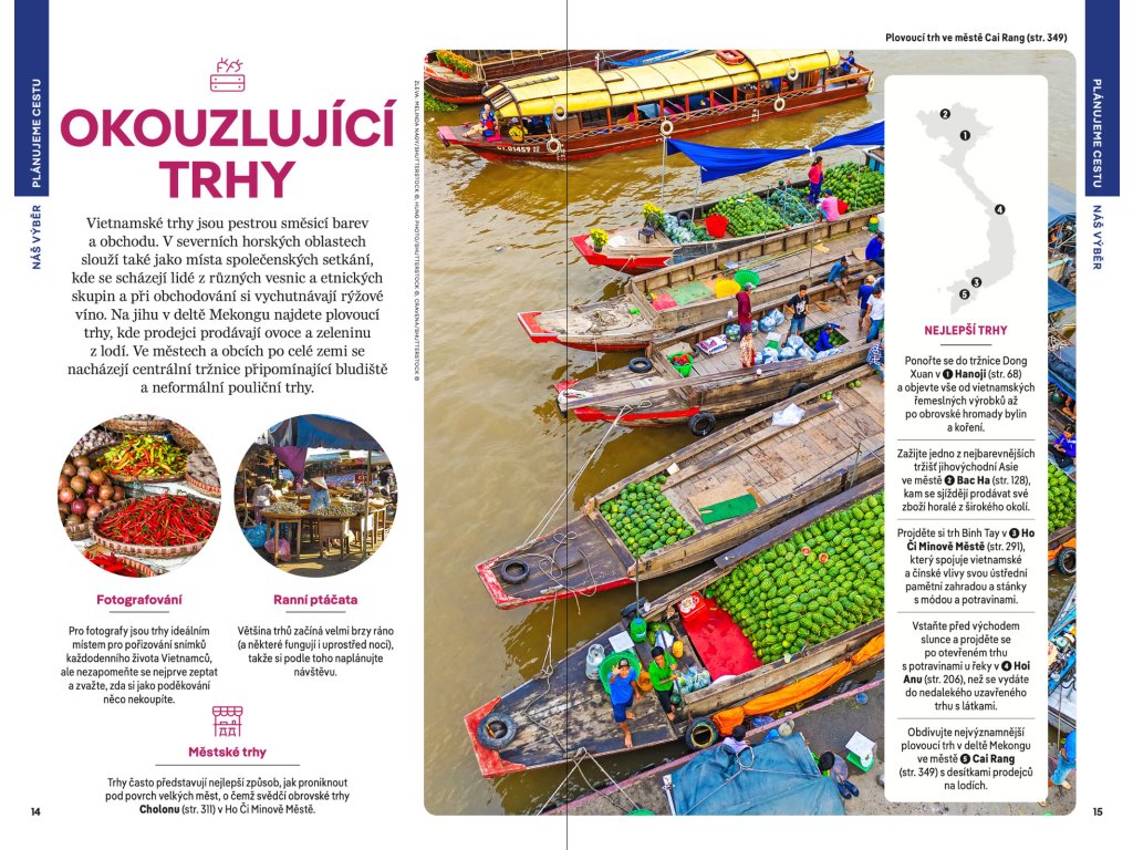 "Vietnam, s ohromujícími přírodními krásami a komplexní kulturou, dynamickými megaměsty a vesnicemi horských etnik, je exotickou a podmanivou zemí."Vietnam toho nabízí opravdu mnoho. Navštivte živé rybářské vesnice regionu Phu Yen, vydejte se na kulinářskou cestu historií, naplánujte si výlet po úžasném okruhu regionem Ha Giang nebo obdivujte třpytivé khmerské chrámy města Soc Trang.