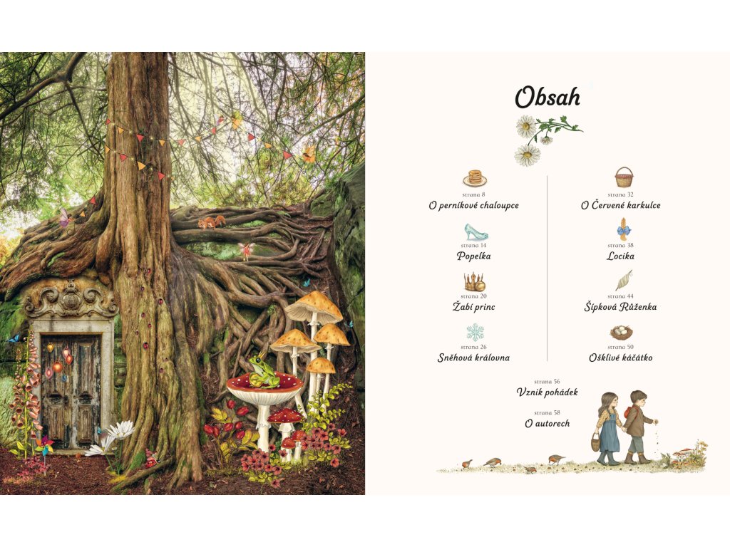 Vstupte do pohádky a objevte osm nadčasových příběhů z pera bratří Grimmů a Hanse Christiana Andersena, které okouzlí malé i velké čtenáře. Tato sbírka není jen obyčejnou knihou pohádek - jedinečné grafické zpracování kombinuje úchvatné fotografie přírody, především majestátních stromů, s něžnými ilustracemi pohádkových postav. Vzniká tak kouzelný svět, kde se skutečnost mísí s fantazií a kde se můžete doslova zatoulat. V textech ožijí ty nejoblíbenější evropské pohádky jako Popelka, Šípková Růženka či Sněhová královna. Nechte se vtáhnout do příběhů plných kouzel, dobrodružství i ponaučení a objevte, jak krásné je s dětskou čistotou v duši znovu vstoupit do pohádky.Doplňkové parametry